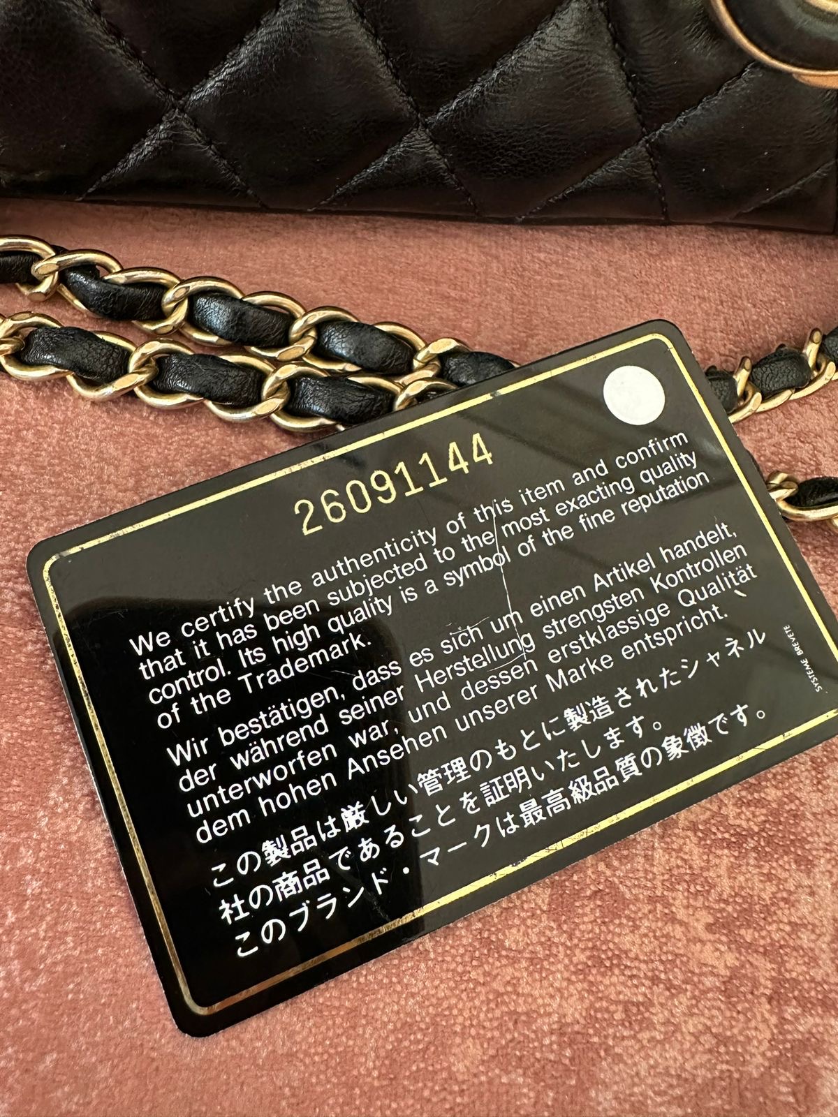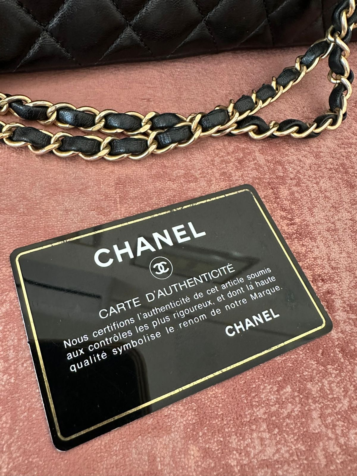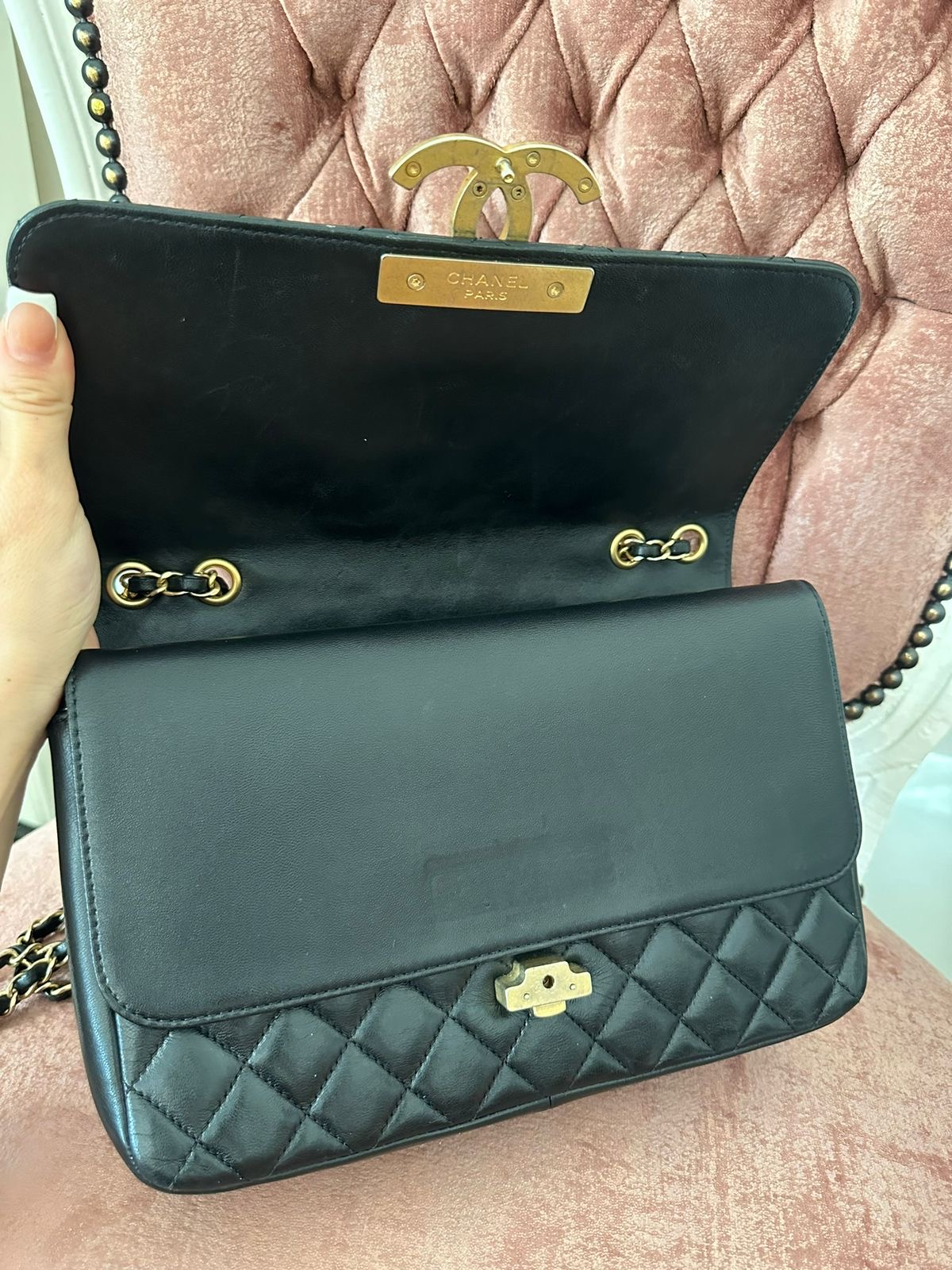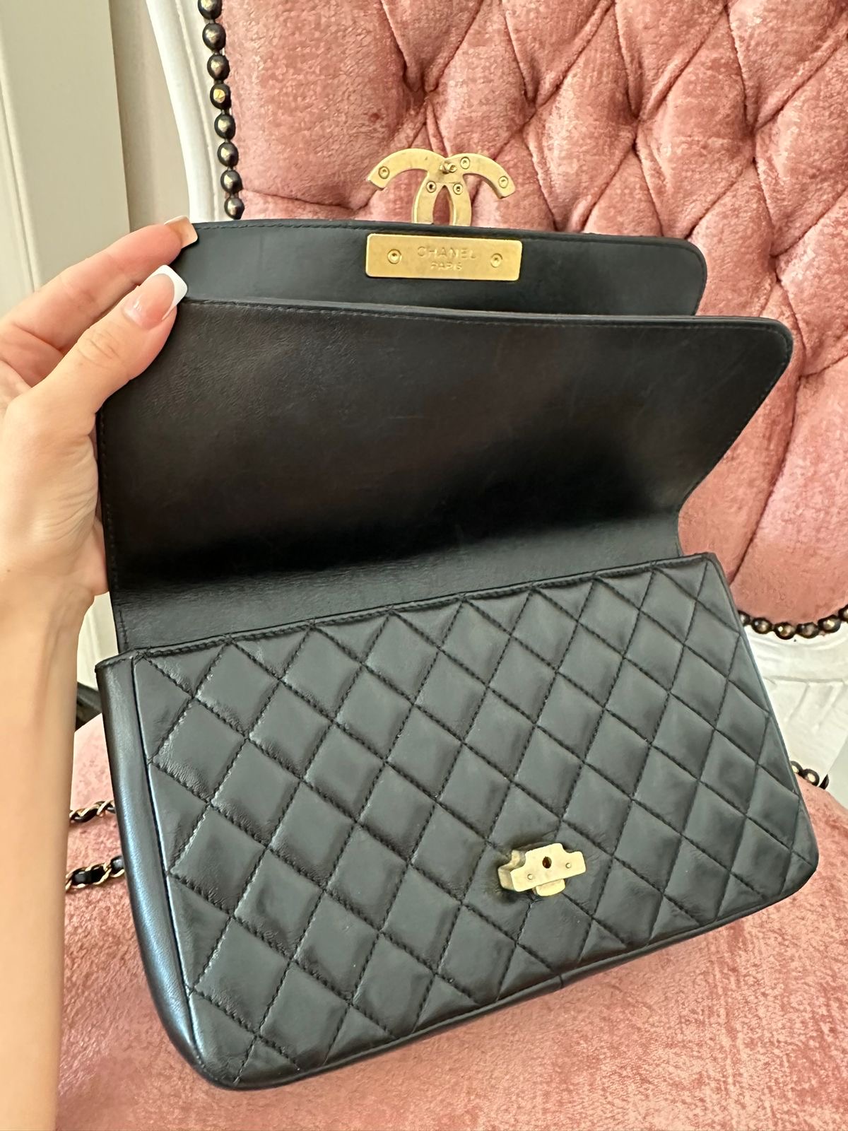 This is an authentic CHANEL Lambskin Quilted CC Chic Flap in Black. This stylish bag is crafted of diamond quilted lambskin leather in black. This flap bag also features a gold chain link shoulder strap threaded with leather and a frontal flap with a leather and gold CC turn lock. This opens to a black partitioned leather interior with zipper and patch pockets.