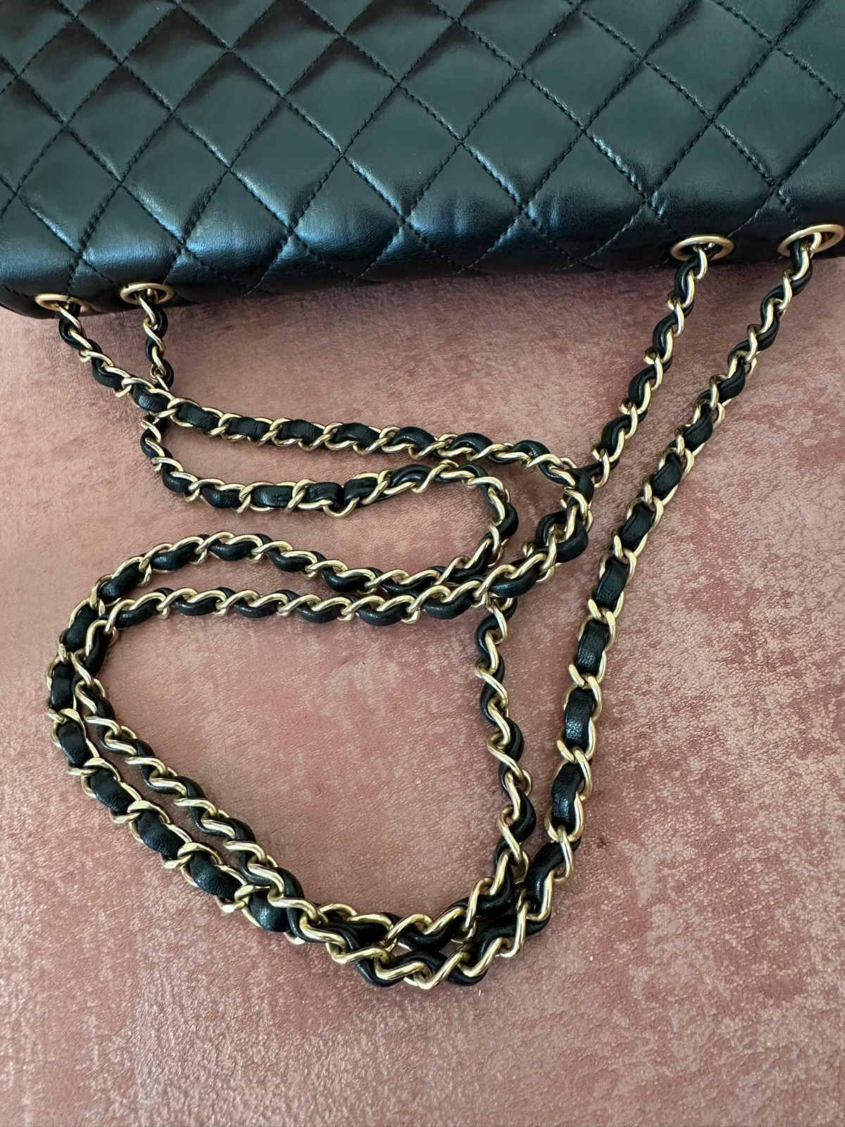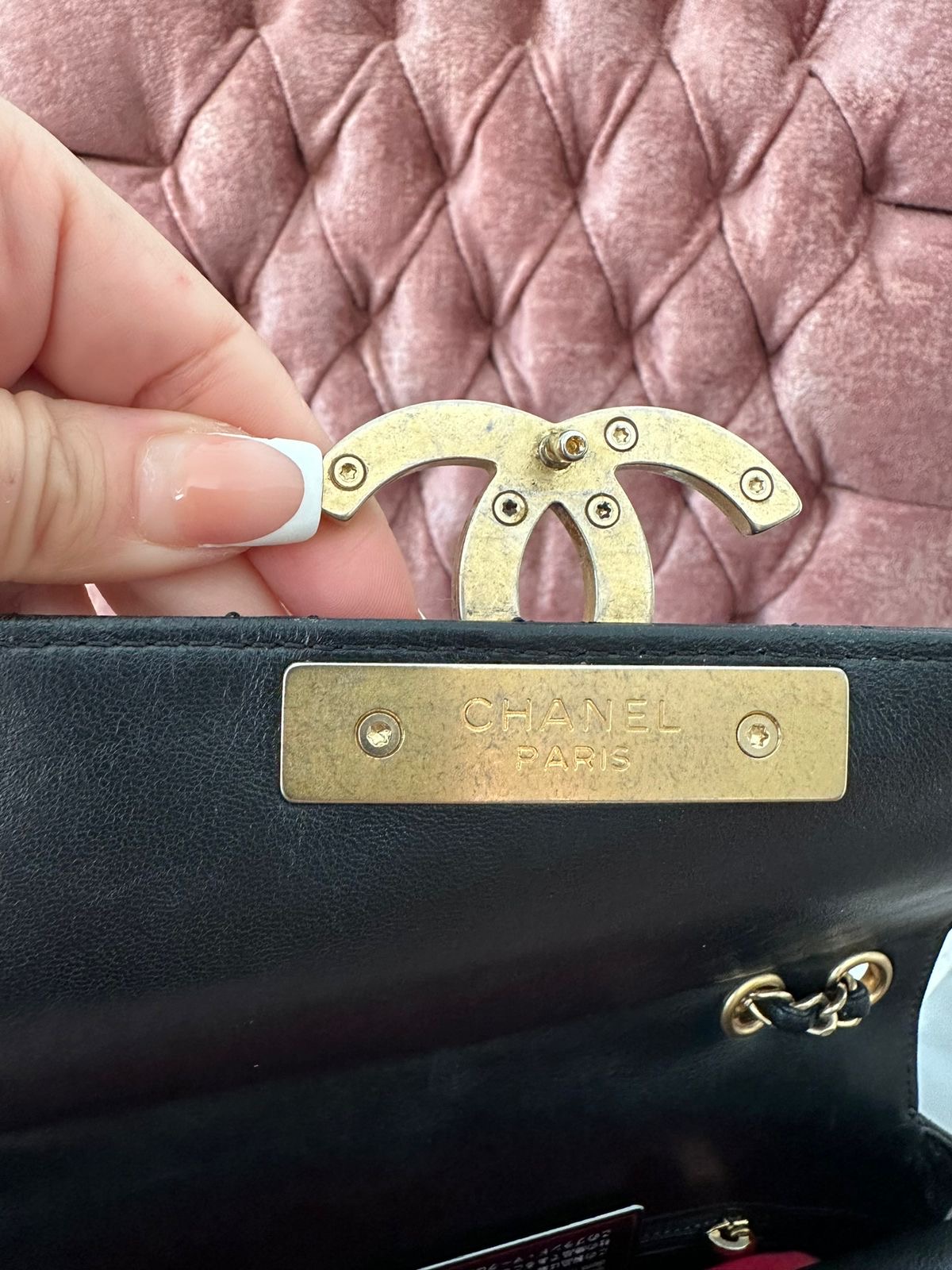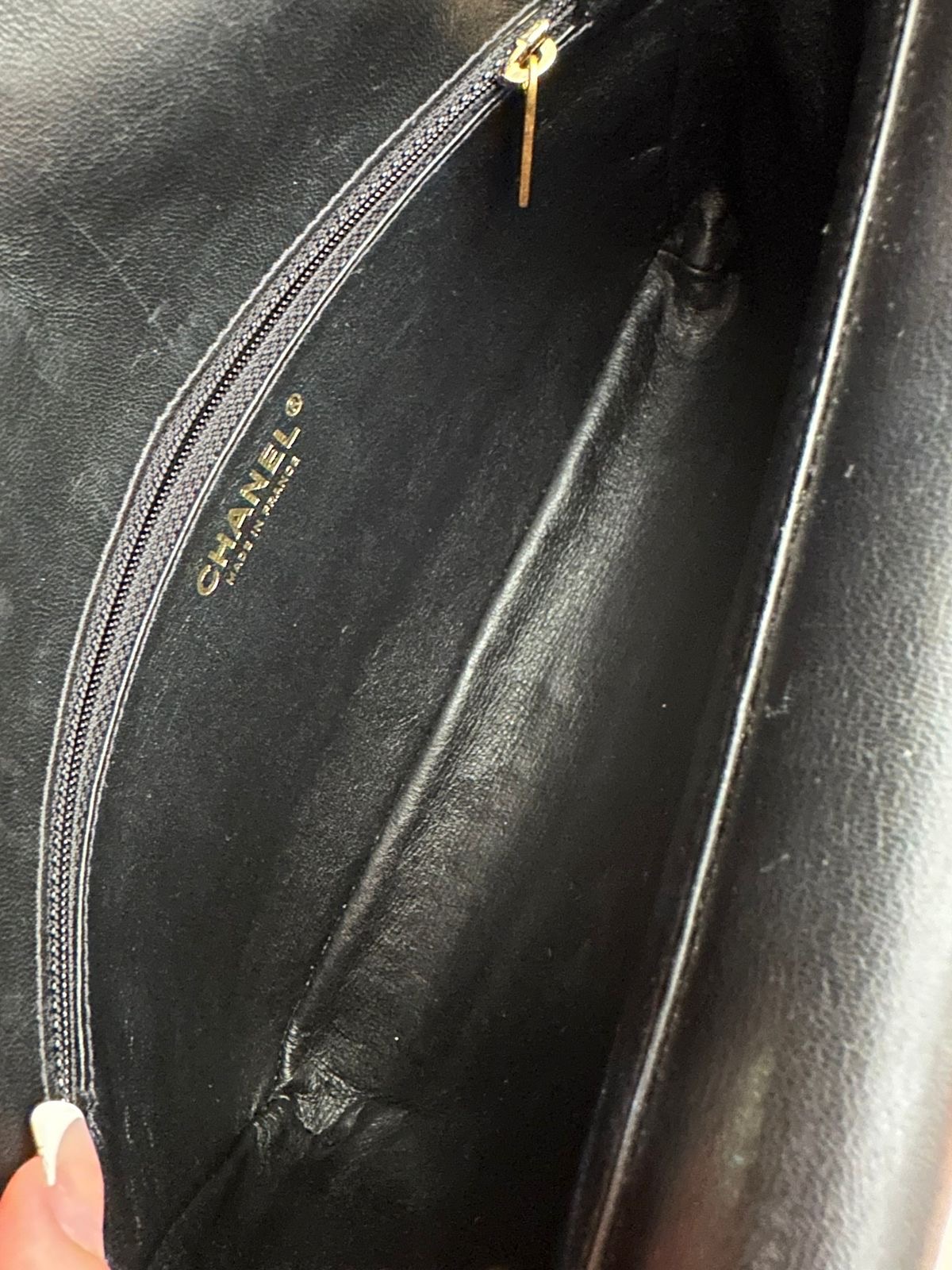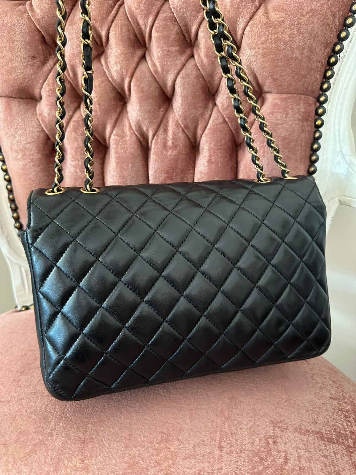 This is an authentic CHANEL Lambskin Quilted CC Chic Flap in Black. This stylish bag is crafted of diamond quilted lambskin leather in black. This flap bag also features a gold chain link shoulder strap threaded with leather and a frontal flap with a leather and gold CC turn lock. This opens to a black partitioned leather interior with zipper and patch pockets.