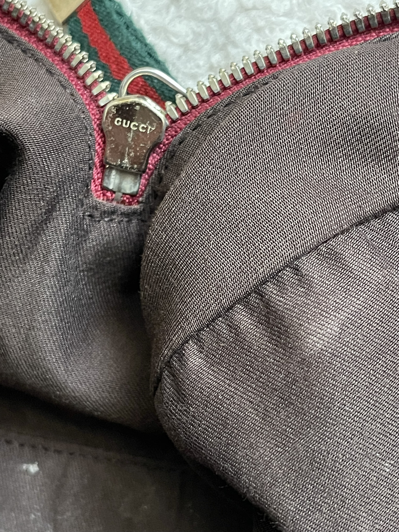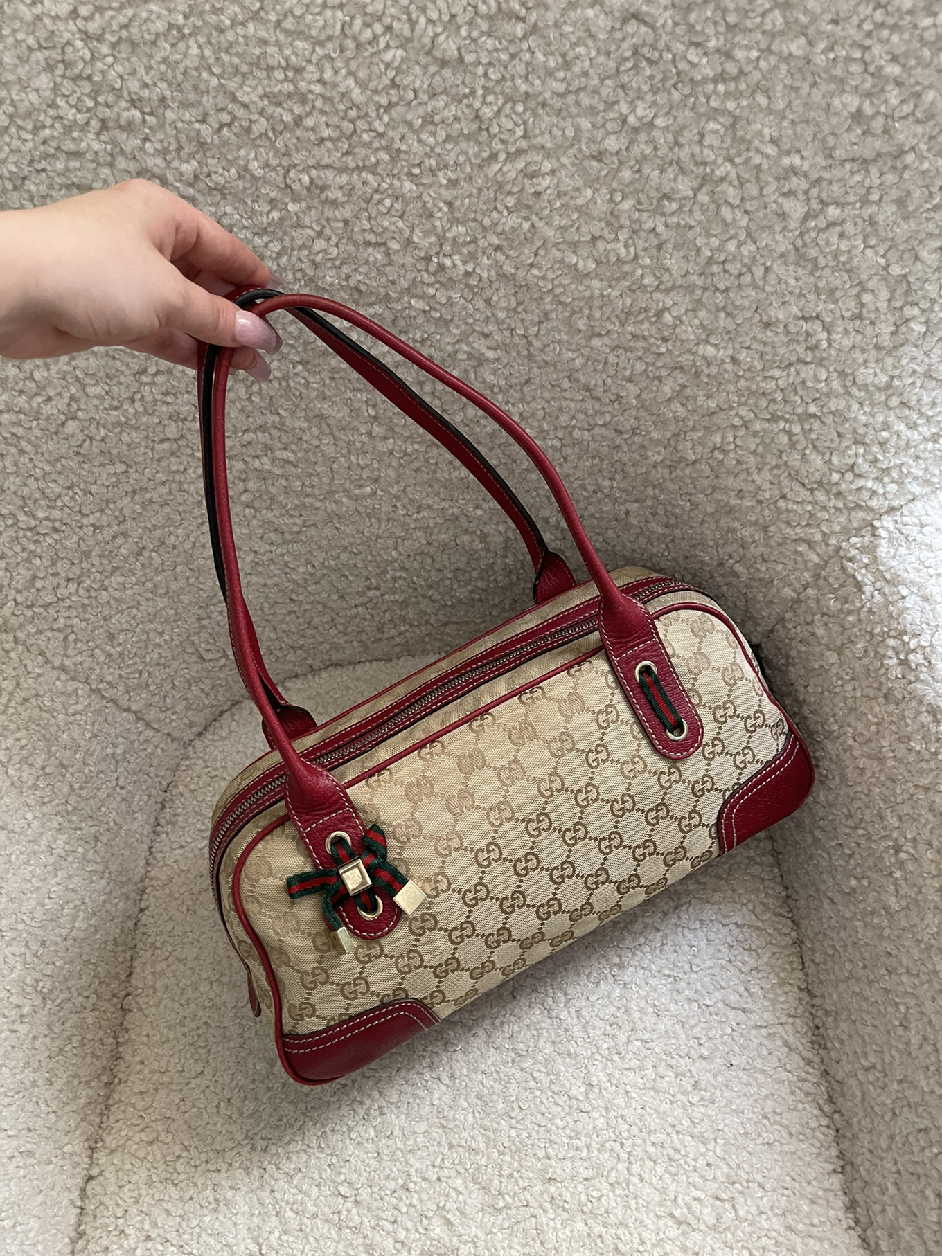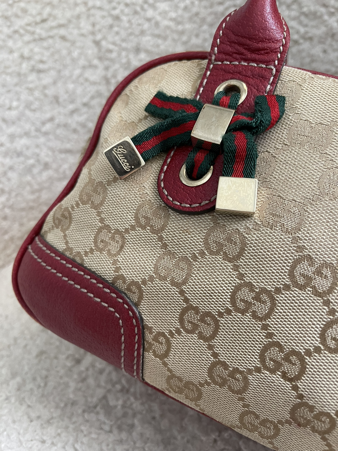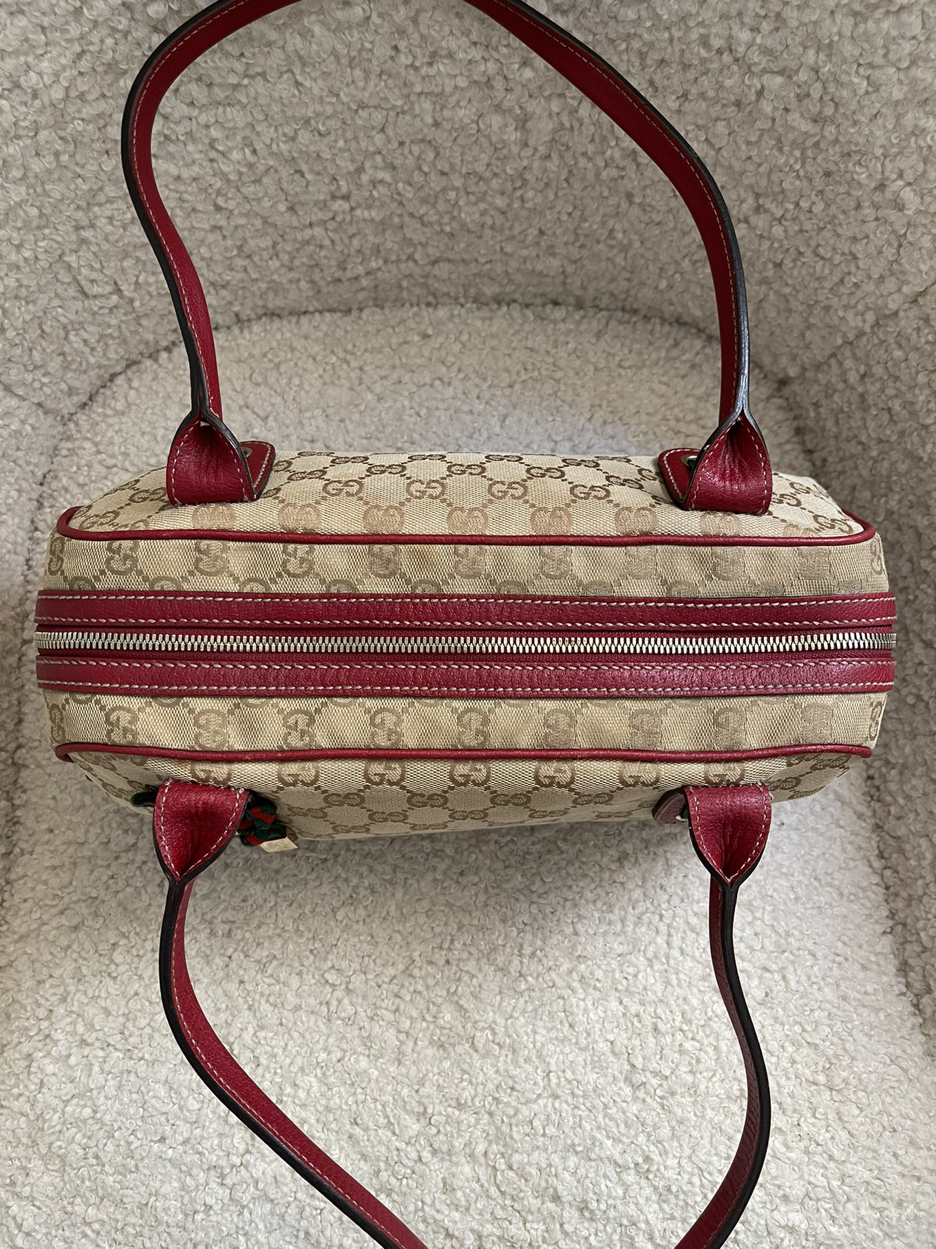 Crafted from GG canvas and leather, this bag from Gucci is designed with minimal style details but with high attention to craftsmanship so that it may assist you with durability. The spacious interior of the bag is lined with fabric and secured by a zipper and the bag is held by two handles.